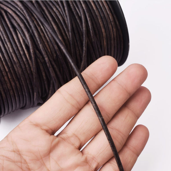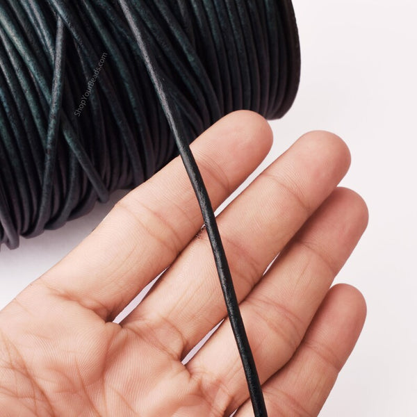 3mm Natural Black Matte Finish Leather Cord - Round - Premium Quality - Indian Leather
