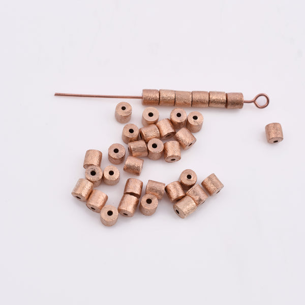 Rose Gold Plated Cylinder Barrel Drum Beads - 4x4mm