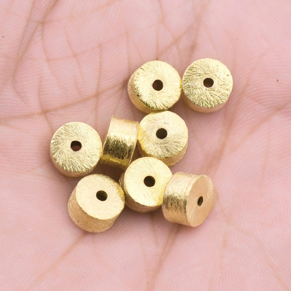 Gold Plated Cylinder Barrel Drum Beads - 6x4mm