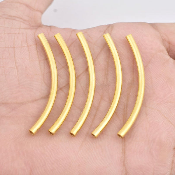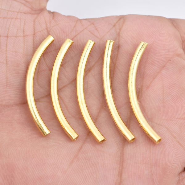 5Pcs Gold Plated Curved Tube Beads - 40mm / 2mm hole