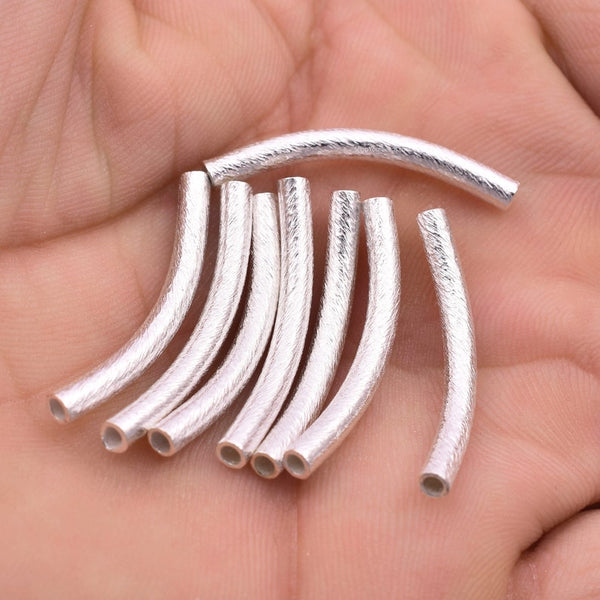 Silver Plated Curved Tube Pipe Beads - 40mm