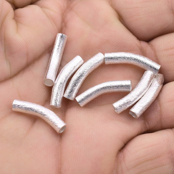 Silver Plated Curved Tube Pipe Beads - 20mm