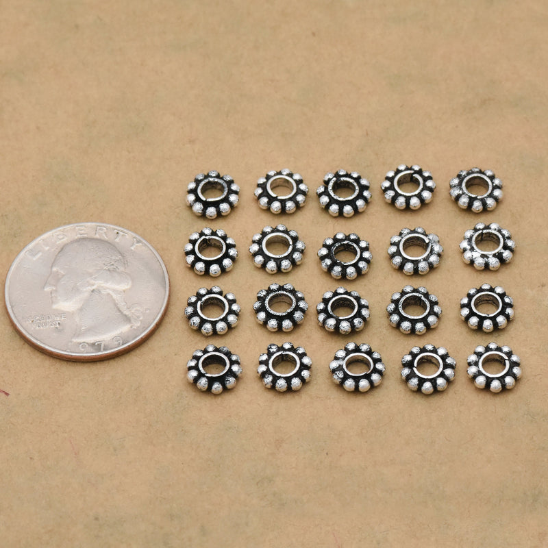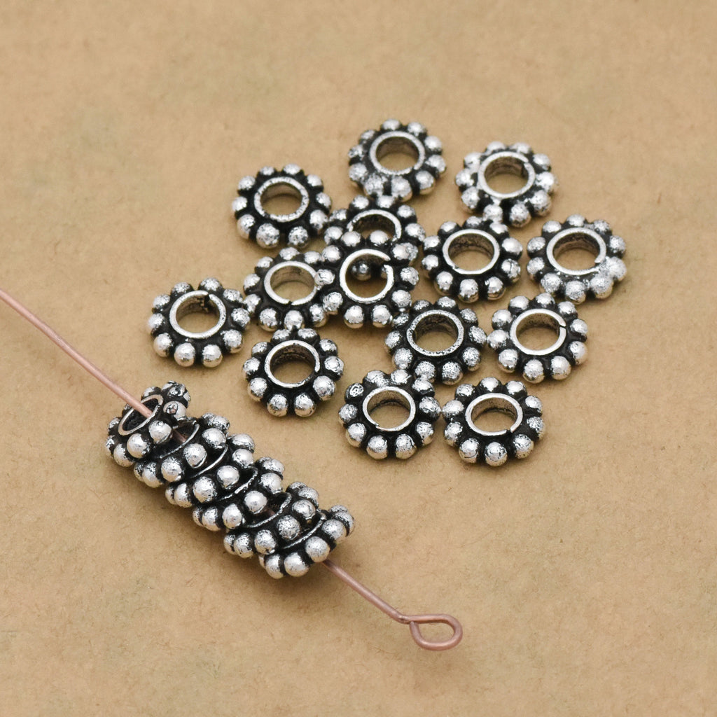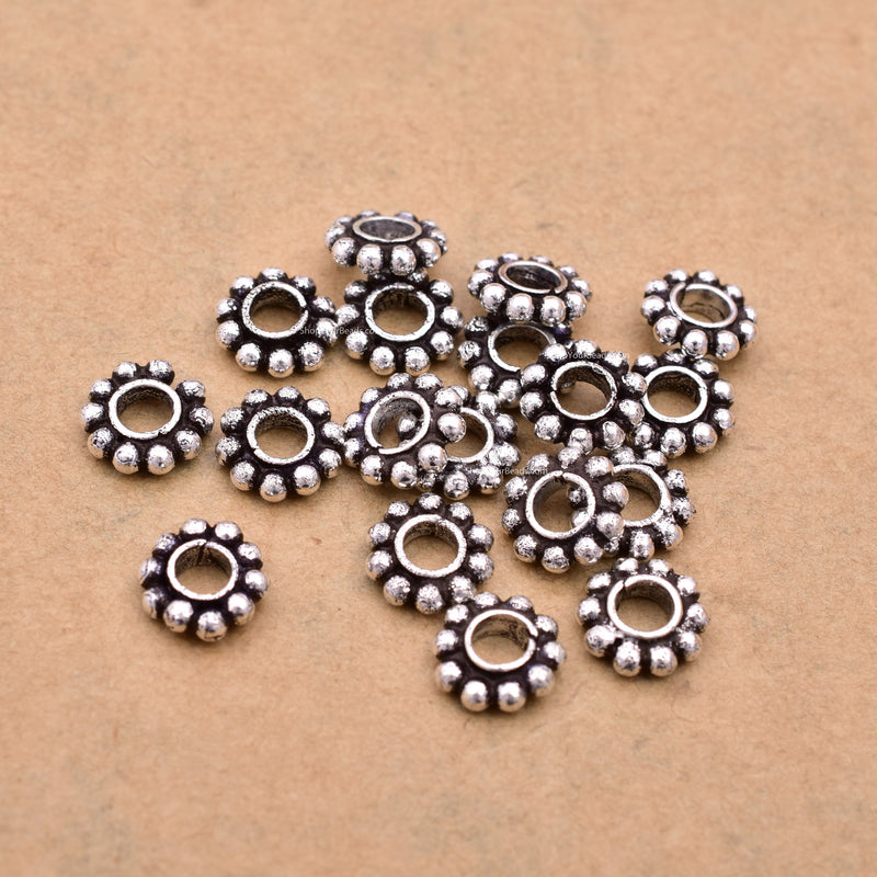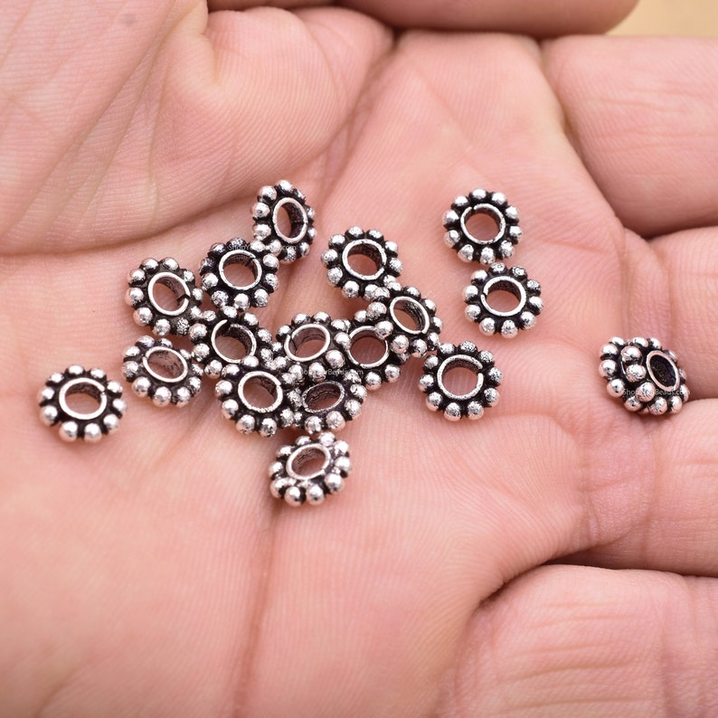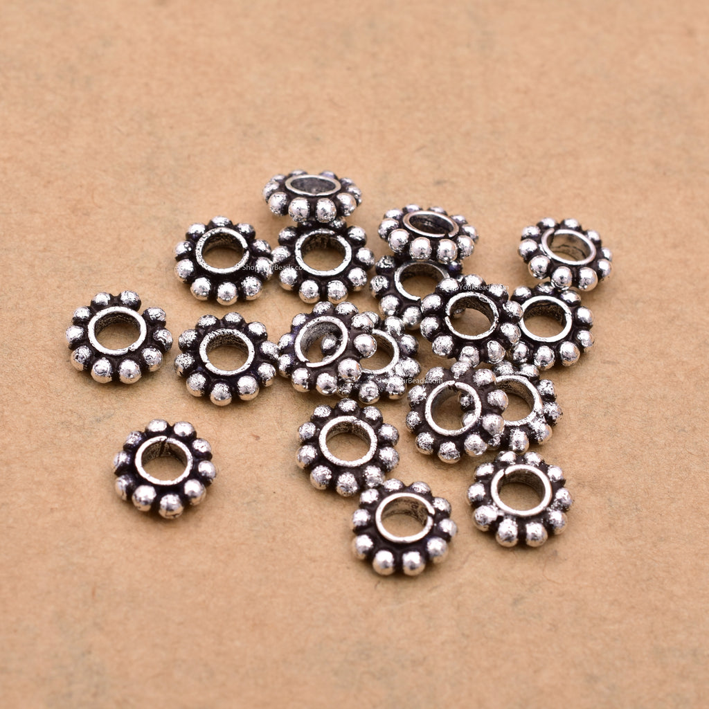 Finish any bracelet, necklace or any other jewelry design with a lovely antique theme with this Fine 999 silver plated 8mm Daisy spacers beads, since its a silver color will go well with any pattern. You'll love the way these beads brings even more detail to your designs. It will add an artisan touch. You'll love the simplicity yet classy vibes of this. This versatile design and delicate size will work with many of your jewelry designs. You'll love completing your style with this lovely option.