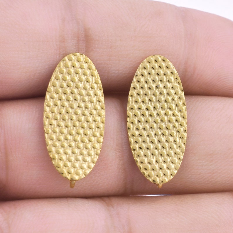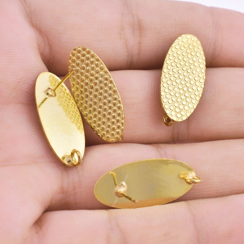 Gold Textured Oval Studs Earring connector, Gold Plated Earring Component, earring parts, dangle earring making 2 set