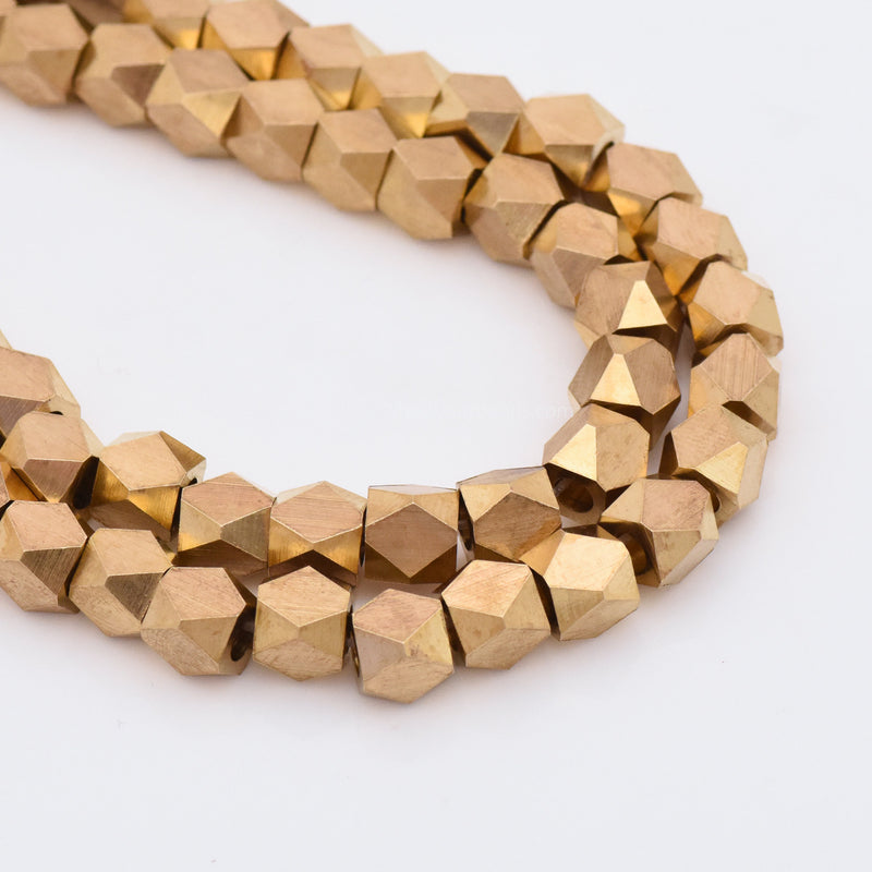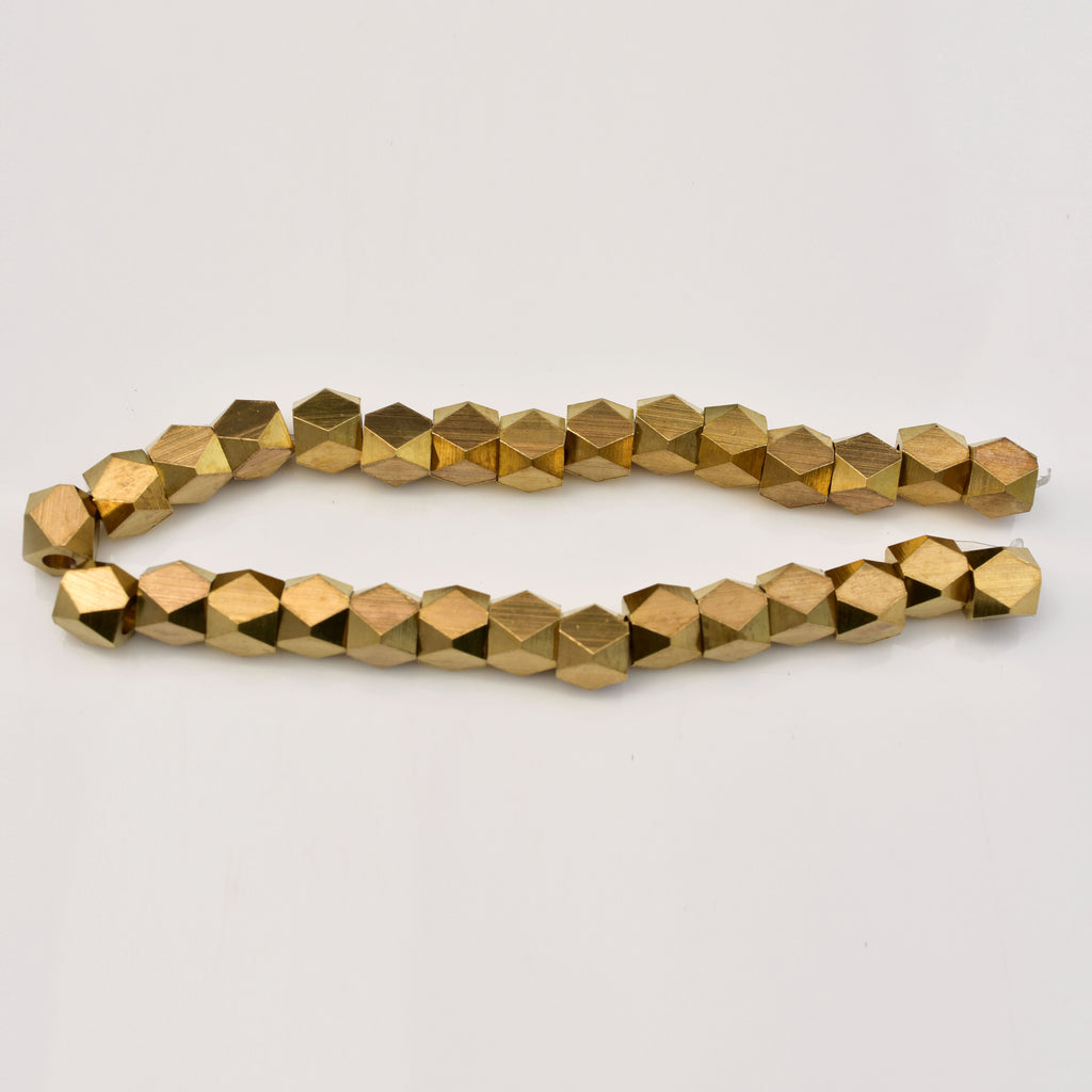 Add a bit of edginess to your designs with this 29pc-7mm Raw Brass Diamond Shape spacer beads for jewelry making, 8 Inch Strand faceted spacer beads. These tiny beads will make excellent pops of shine between larger beads and you can even incorporate them into your bead embroidery along with seed beads. Try using this bead to break up color patterns in designs. Best of all, it features a brilliant brass shine that will work with any color palette you may have in mind. It makes a nice pop of shine anywhere.