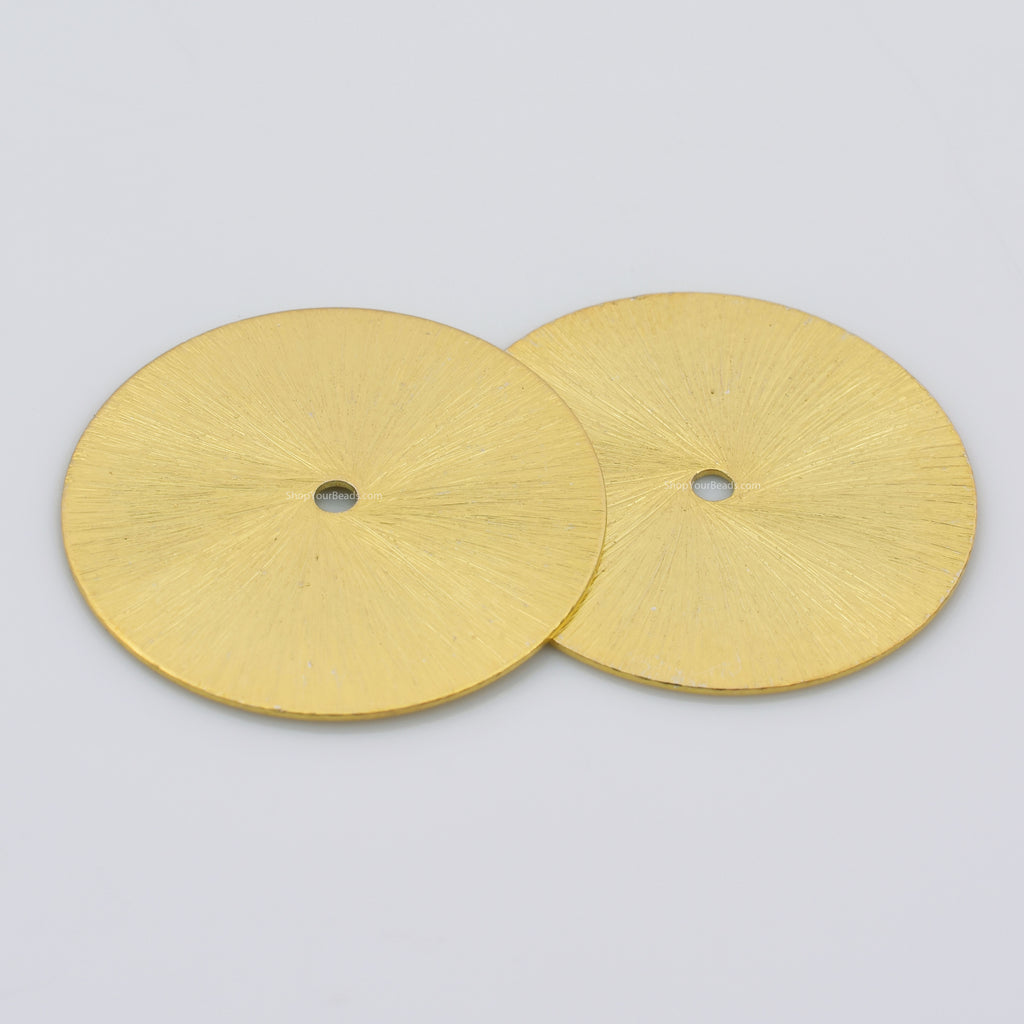 If you are looking for a piece that won't detract from your work, but still adds character, this is it, 24k gold plated 32mm flat disc spacers. With its gold plating, you can use almost any color bead in your collection and receive beautiful results. Try it as the finishing touch in your next jewelry design. Give your designs a sleek and stunning finish with this. GRAB THEM NOW...!!!!