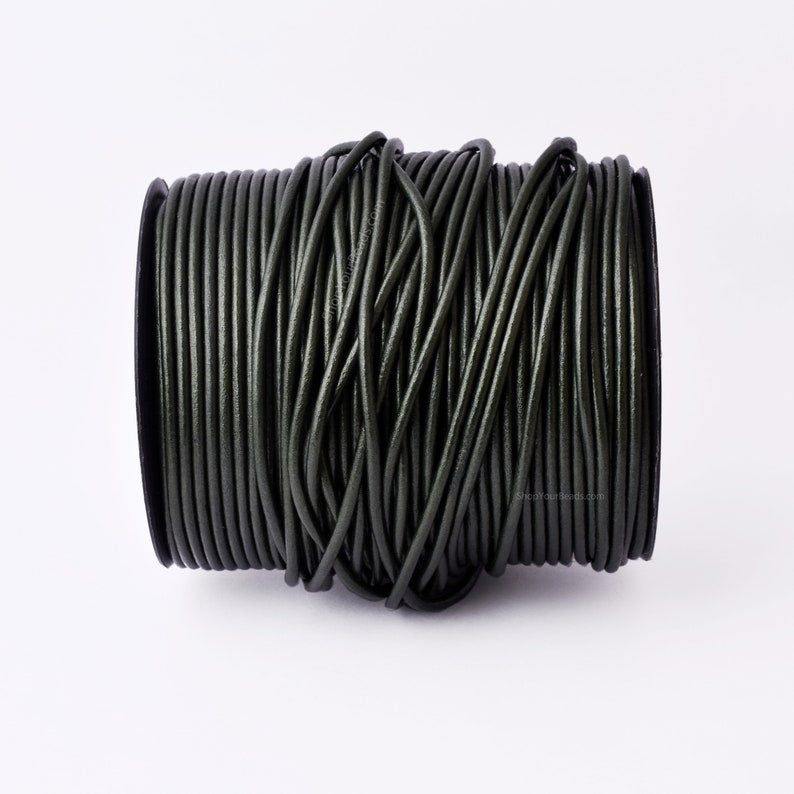Beautiful Handmade Metallic Forrest Green Leather Cord 3mm thick lace round Premium Leather cord for jewelry making. Its color will add sophistication to your looks. The simple style and versatile look will work with a variety of designs. All you need to do is add your favorite findings or jewelry components for an element of your unique personality. Use it to create gifts for Valentine's Day, Christmas, or birthdays such as Leather Wrap Bracelets, Necklaces, Braiding, Beading, Fine Lacing, Earrings, and more. Our leather cords are by yard. Add this essential component to your jewelry making supplies so you will always be prepared.