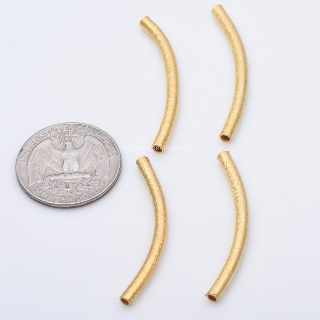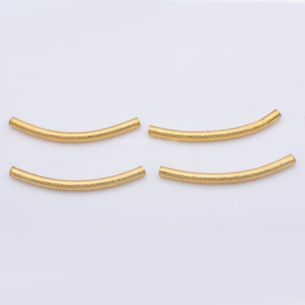 This 24k gold plated 39 / 40mm curved tube / Pipe bead is a great way to decorate most jewelry wires and thinner fibers. Since it is a handmade product length may vary +/- mm. Incorporate this great spacer bead into your designs when you want them to stand out. The larger size of this tube bead makes it possible to use with lots of fun fibers, like leather and silk ribbons. With a wide enough hole-diameter, feel free to use this bead on elastic cord, silk ribbons, and leather. The slight curvature in this bead will give your designs a more attractive drape.