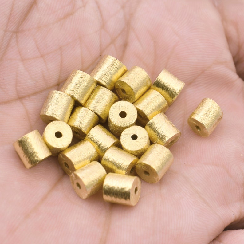 Beautiful handmade brushed Real Gold finish Barrel / Drum shape beads for jewelry making. Thread both ends of your stringing material through opposite ends of this finding to create an adjustable bracelet or necklace. Versatile jewelry-making supply for earrings, pendants, belts and home décor. It works wonderfully with thin chain, leather, and other stringing materials. The warm gold shine will work with a variety of color palettes, all while adding a classic touch. STOCK UP NOW...!!!