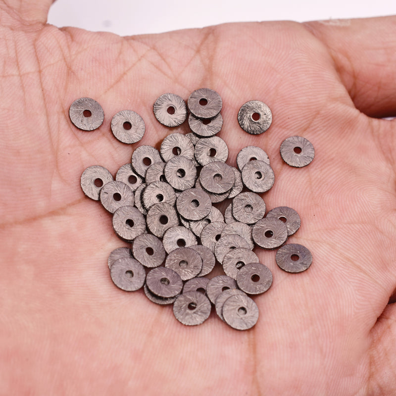 Be prepared for every project and keep a supply of black / gunmetal plated 6mm flat disc beads in your stash. Its brushed finish will give your designs instant sophistication, while its charming black coloring adds a warm touch to any palette. Use this black flat discs in your jewelry designs to complement all of your colored pieces. You can try it in a bracelet, a bead frame, or part of a necklace or any other jewelry design. It's sure to draw the eye to designs. BUY THESE NOW....!!!!