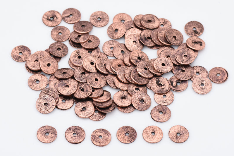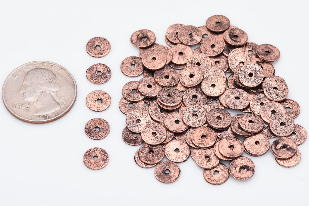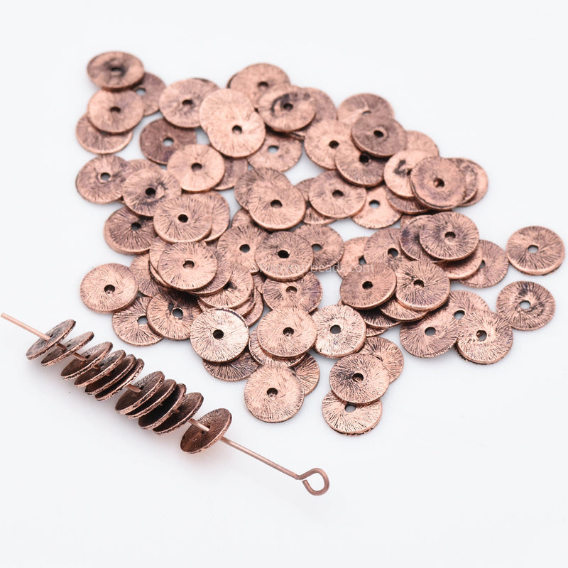 This beading basic is sure to open up your design possibilities, Brushed Flat disc spacer copper plated antique 8mm beads for jewelry making. This disc bead is versatile in size, so you can use it as an accent of copper in necklaces, bracelets, and even earrings. A staple component for jewelry designers, this flat disc bead with brushed finish will add an elegant touch of copper brilliance to jewelry without distracting bulkiness. BUY NOW...!!!