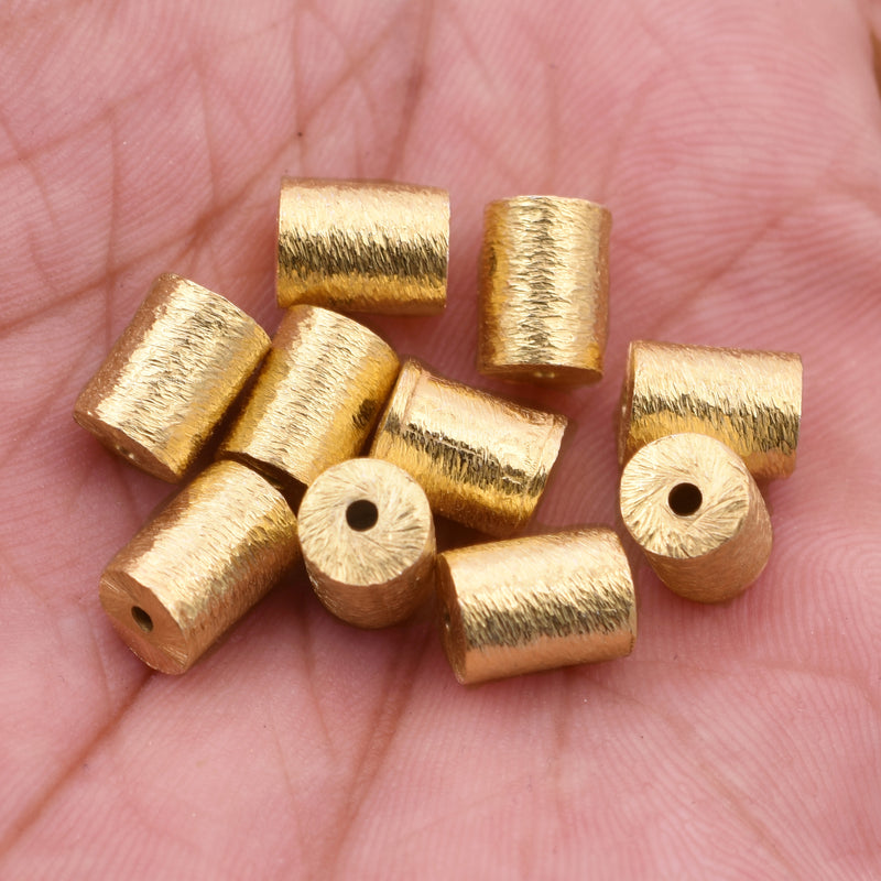 Make sure you have the right supplies on hand with this. Beautiful handmade 24k gold plated brushed finish Barrel / Drum shape beads for jewelry making. The brilliant gold shine will make a beautiful complement to any color palette you may have in mind. It is 8x6mm in size, so you can use it as a spacer or an accent of shine. This bead will bring dimension and shine to your jewelry designs. STOCK UP NOW....!!!!