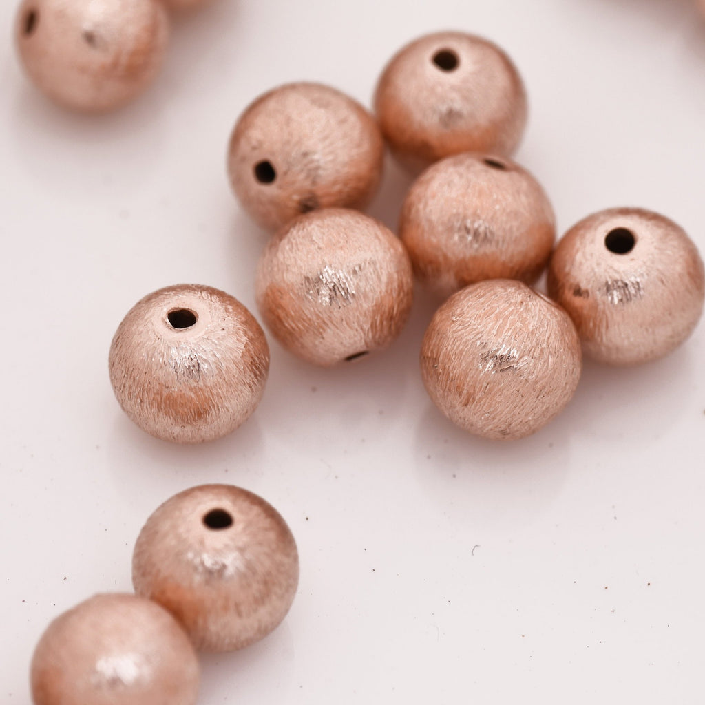 Here, we have beautiful handmade Ball shape Rose Gold plated brushed finish beads for jewelry making, this jewelry finding is made of genuine copper and handmade by artisans. It is Rose Gold plated( electroplated ) and brushed finish. The roundel shape will look great between larger beads, or you can layer several together for a fun effect. The regal rose gold shine will warm up any color palette you may have in mind. Rose gold goes with hundreds of color palettes, so don't be afraid to try something new. With 10pieces per pack, you'll always be prepared with these jewelry-making essentials.