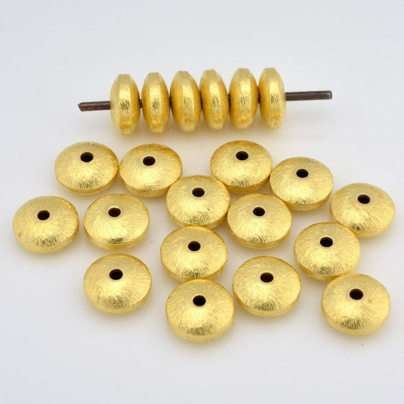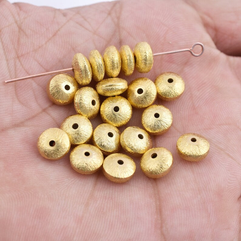 Beautiful handmade Saucer shape Gold plated brushed finish beads for jewelry making, this jewelry finding is made of genuine copper and handmade by artisans. it gold plated( electroplated ) and brushed finish that is sure to stand out while complementing your chosen color palette or your jewelry design. This 8mm saucer bead is versatile in size, so you can use it as an accent of gold in necklaces, bracelets, and even earrings. It's a great item to have on hand for all your jewelry and craft needs, and the fiery color is sure to add a warm touch to projects. Stock up today and use these beads again and again.