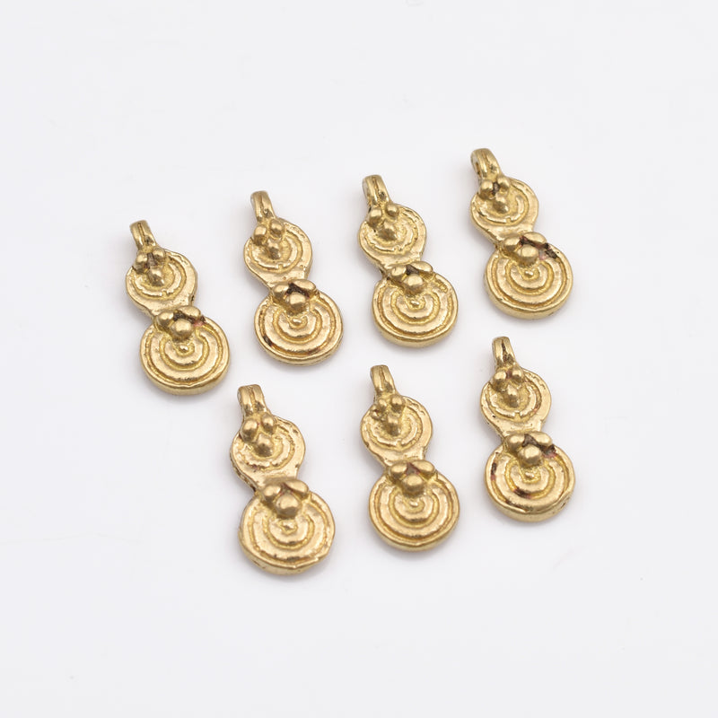 Create tribal / bohochic jewelry with this 19mm - 15pcs Raw Brass Charms, Spiral Tribal Brass Pendants, Ethnic Charms, Boho Pendants For Jewelry Making And Micro Macrame. You'll love the unique look of this. This charm feature a beautiful designing all over the surface of it. The back of the charm is blank. This charm is sure to add glamour to designs. The loop attached to the top makes it easy to add to designs. Use it in earrings, necklaces or charm bracelets. You can also wear it as it is by simply adding it to a chain. It features a beautiful raw brass warmth full of rich.