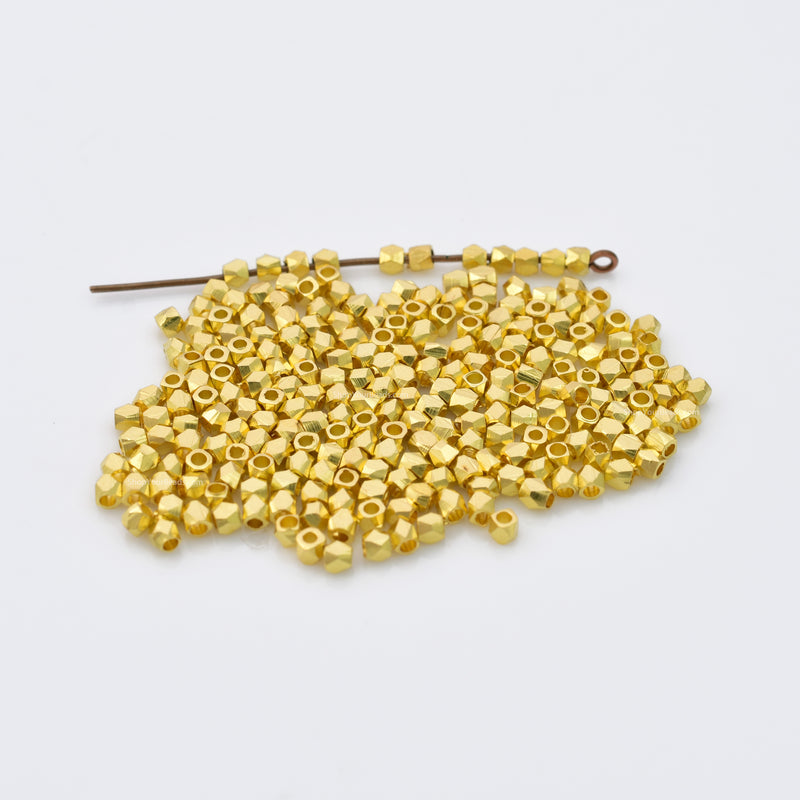 Create unique bead patterns with this tiny gold plated spacer beads for jewelry making, faceted diamond cut spacer beads. This thin bead features a hexagon shape for a little geometric flair for your jewelry. This gold spacer bead is tiny in size, so you can use it along with seed beads, add it as a spacer between larger beads, and more. It's sure to stand out in your jewelry designs. Gold spacers beads do an excellent job of incorporating a solitary gold component into the overall design. It makes a nice pop of shine anywhere.