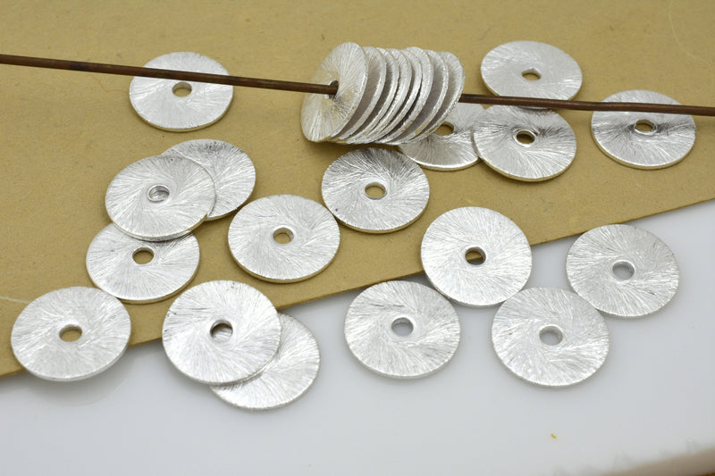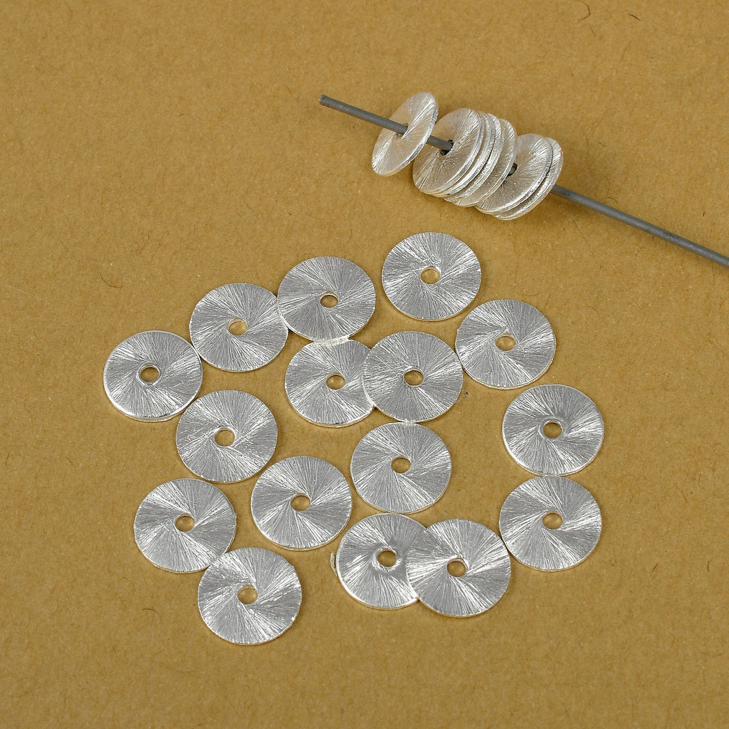 10mm Silver flat disc beads - 30 pieces silver plated brushed finish flat Disc shape spacer beads are perfect spacers in between stone beads and crystal beads. These spacers have deep brushed groves which clearly visible and enhance beauty of beads. you can use these in any kind of jewelry making washer spacer. Generally suitable for people to wear who have an intolerance to some plated metals or silver. Selected for their consistency of shape and quality. BUY NOW...!!!!!