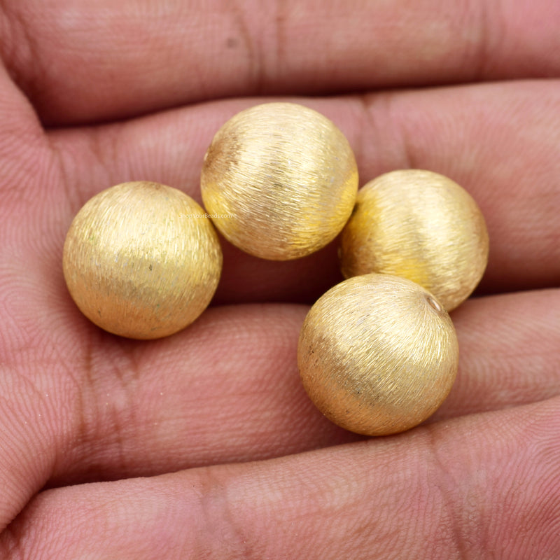 These 24k gold plated 14mm brushed ball beads provide a very economical way to add some brightness to your beaded designs as an alternative of pure gold metal beads. It features a thinner wall that gives it a lightweight feel ideal for all kinds of projects. Use this bead as a spacer, an accent to your favorite prestige findings, pendants, or string a bunch together for an elegant necklace. It features a wide enough stringing hole, so you can use it with thicker stringing materials like silk ribbon, leather, and more.