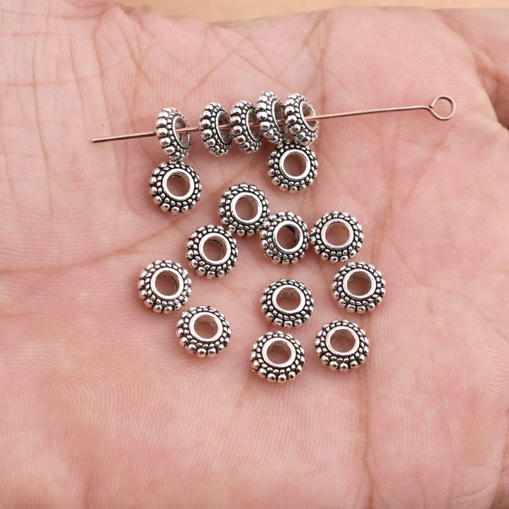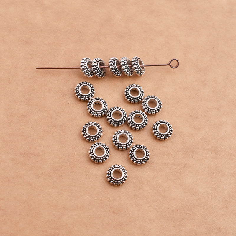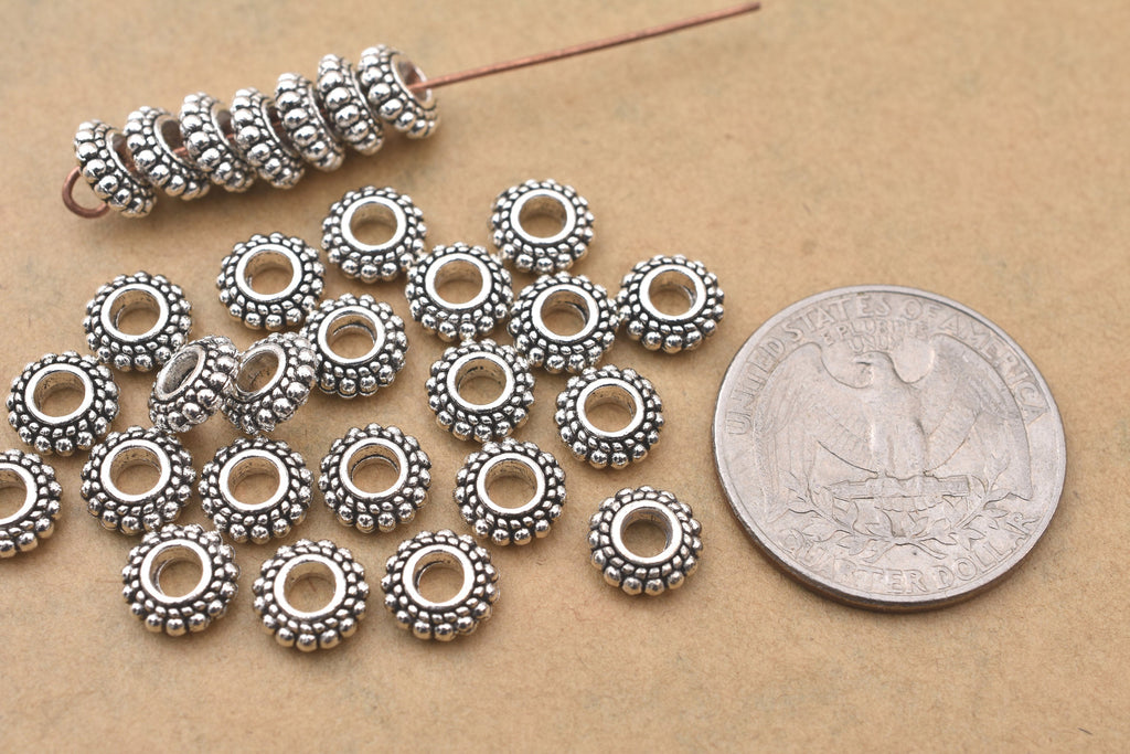 When you're in need of a beautiful spacer bead, look no further than this Bali silver granulated spacer bead. It would make a wonderful focal point between larger and colorful beads. This Bali spacer bead features intricate work framed on all over the surface and is a wonderful example of the exquisite craftsmanship that goes into Bali components. This bead has an air of elegance about it. Try experimenting with beads in different sizes to create different looks in your designs.