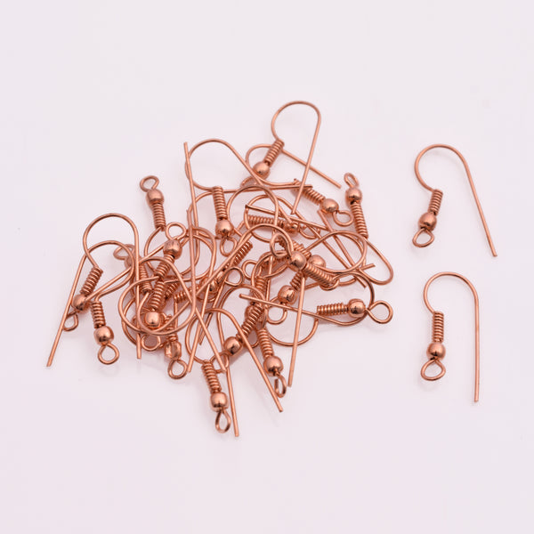 20mm Rose Gold Round Earring Hooks Wires - 30pc
