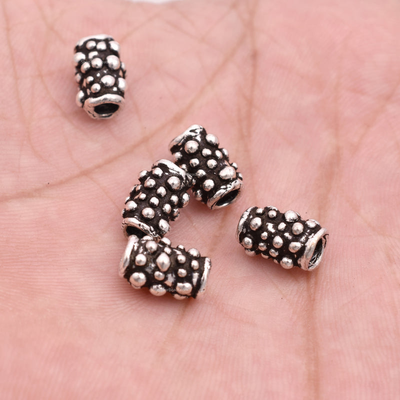 Antique Silver Plated Cylinder Tube Bali Beads - 10x7mm
