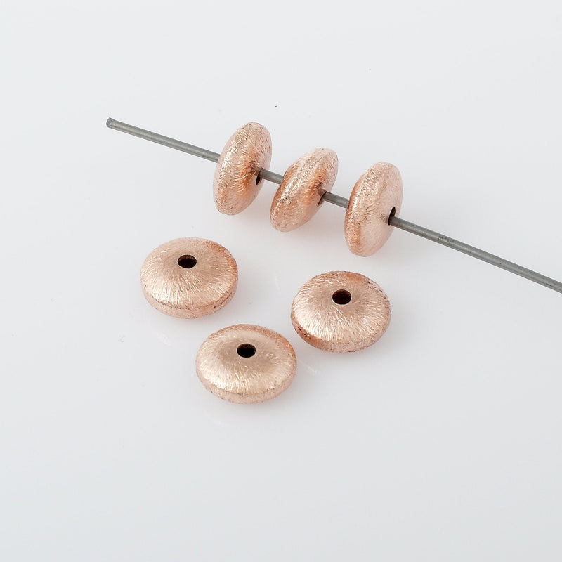 Beautiful handmade Saucer shape Rose Gold plated brushed finish beads for jewelry making, this jewelry finding is made of genuine copper and handmade by artisans. it is Rose Gold plated( electroplated ) and brushed finish. Be sure to grab these rose gold beads so your next design is full of richness and warmth. Because of it's simplicity you can easily incorporate these component into your jewelry designs. It is small in size, so try it in necklaces, bracelets, and earrings. Buy these now....!!!