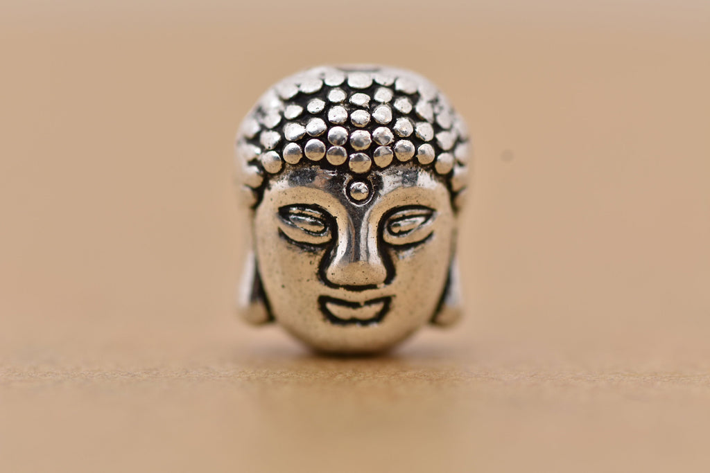 Silver Buddha face bead, Real silver plated, Buddha head Yoga Beads, Tibetan style, meditation beads adds an element of texture and grace. Affordable and with an ornate look, each piece is designed to finish and enhance your jewelry piece with beautiful motifs. This component will add a professional finishing touch to your style. Create lasting designs with the help of this bead NOW...!!!