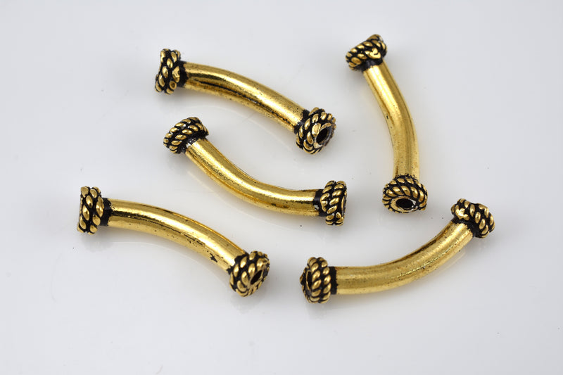 If you are looking for a way to add some elegancy in your jewelry designs that will not take away from the focal piece, this is it, 24k gold plated antique bali curved tubes which will surely enhance your jewelry designs. The timeless glow of gold against the skin is an effect that never goes out of style. It is 22mm in size, so you can use it easily to complete necklaces and bracelets alike or you can also use these in earring makings and any other jewelry designs according to your own ideas.