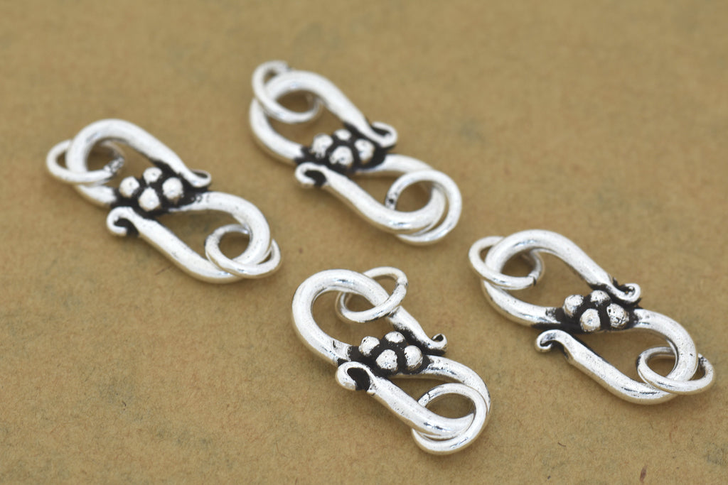 Fine 999 Antique Silver Plated S Clasps for jewelry making. If you are looking for a piece that won't detract from your work, but still adds character and a antique glamour, this is it. Featuring an S-shape, the simple design of this clasp allows you to incorporate them into your designs without distracting from the overall appearance.