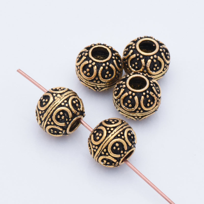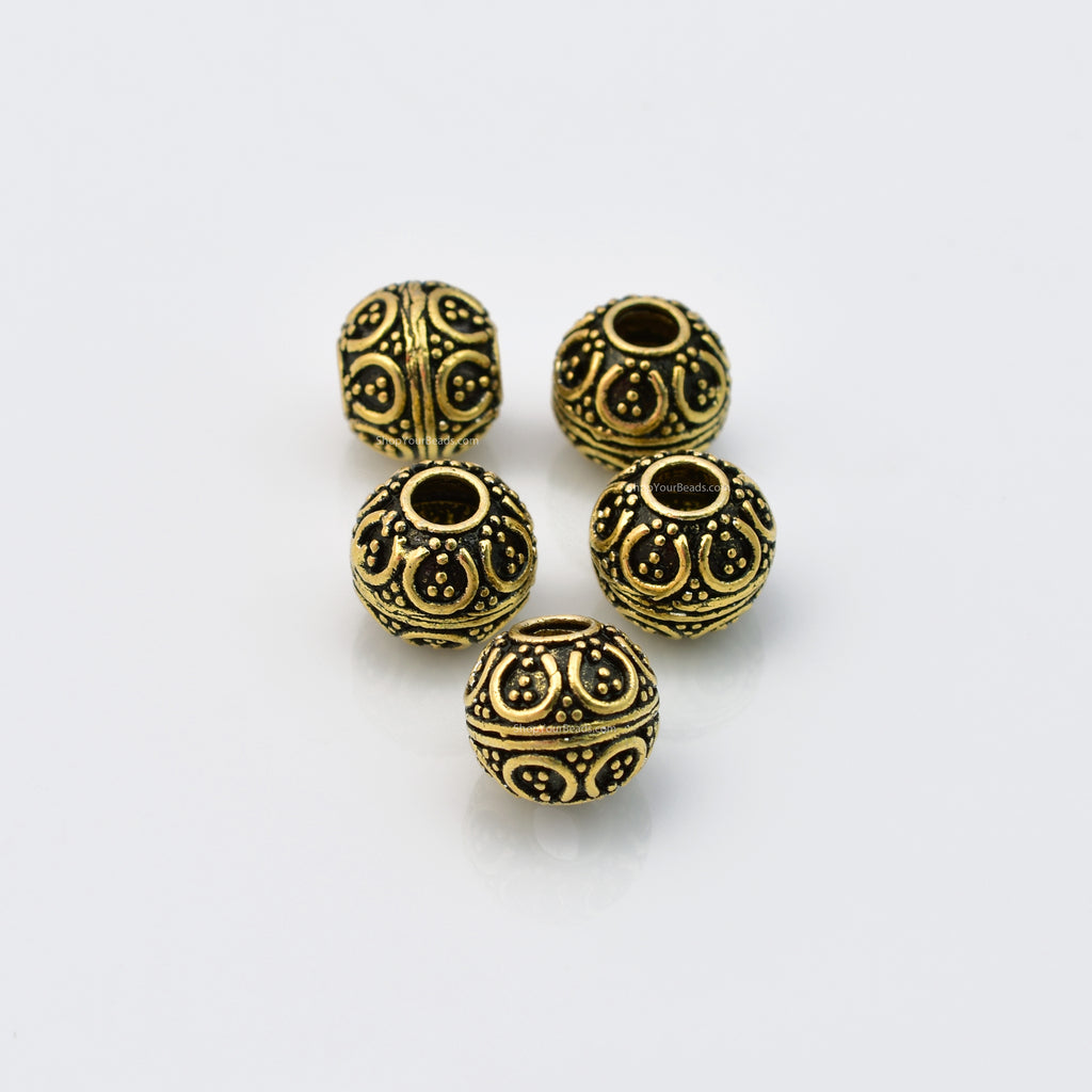 9mm Antique Gold Plated Bali Spacer Ball Beads