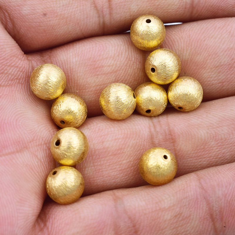 8mm round gold plated handmade brushed beads for jewelry making
