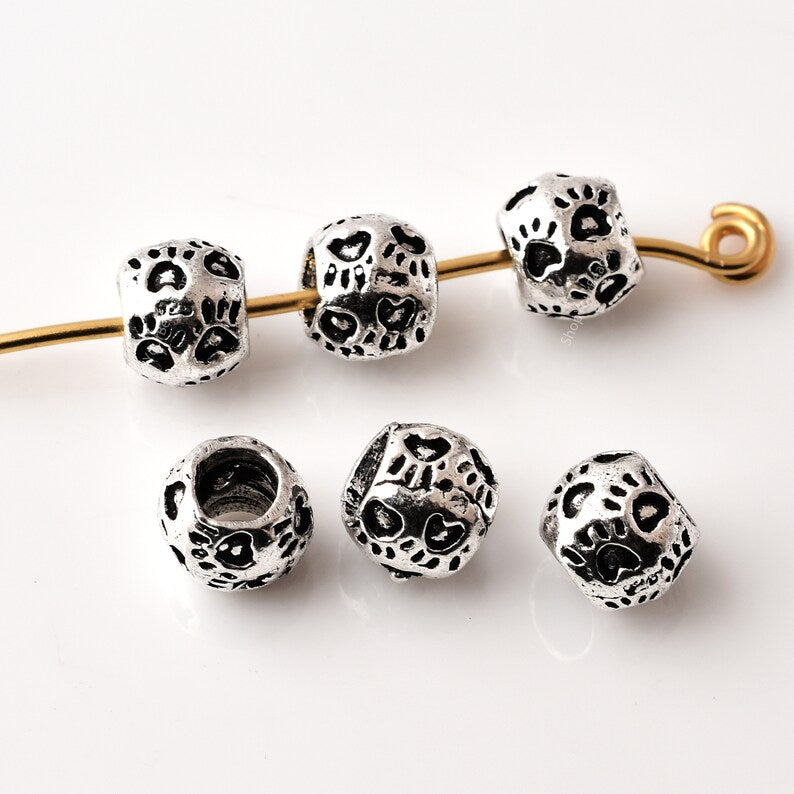 Beautiful Dog Paw inspired silver plated Beads for jewelry making, 9x7mm beads with 4mm hole, made of High quality Lead free Brass and plated with Fine 999 silver. Perfect for any dog lover. This bead makes a wonderful accompaniment to all kinds of components. The versatile silver shine will make a wonderful complement to any color palette you may have in mind. This bold bead will stand out in long necklace strands, chunky bracelet styles, and even earrings. Try experimenting with beads in different sizes to create different looks in your designs. Enjoy the simplistic beauty this bead will offer your jewelry designs.