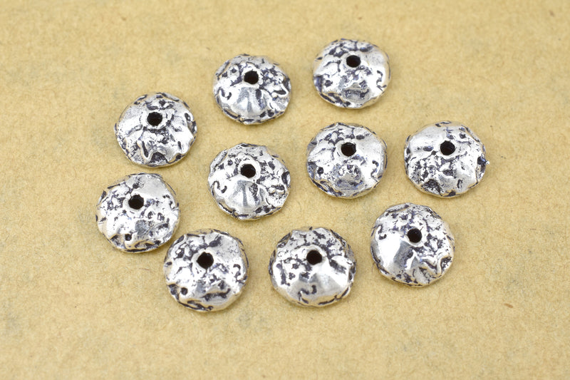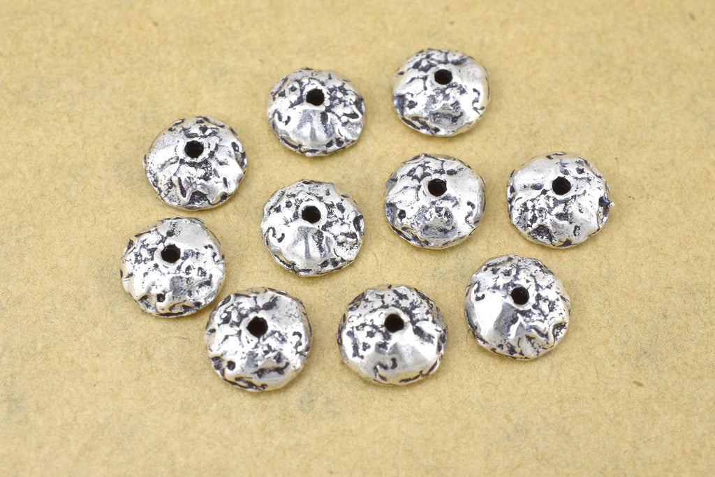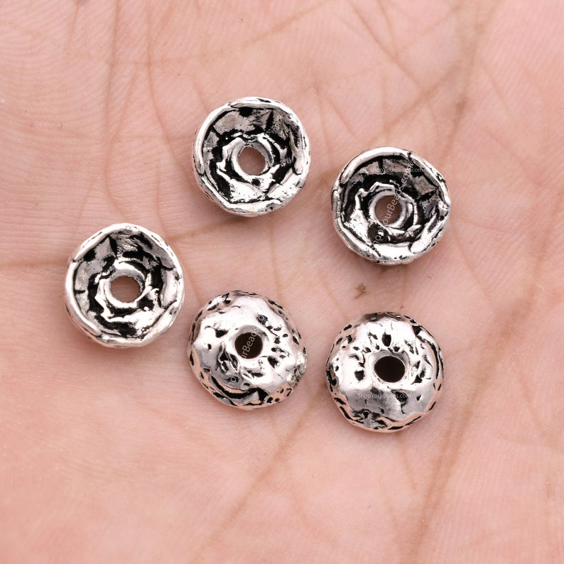 The intricate detailing of this silver plated antique bead caps is made even more exquisite when you consider its handmade source. Use this caps with different sized beads, depending on how much of the bead you want to cover. They are also the ideal size for bracelets and necklaces. It will make a wonderful complement to any style. It will bring complexity and dimension to your bead patterns.