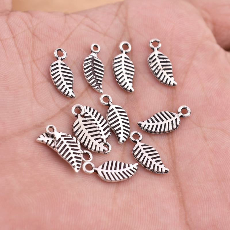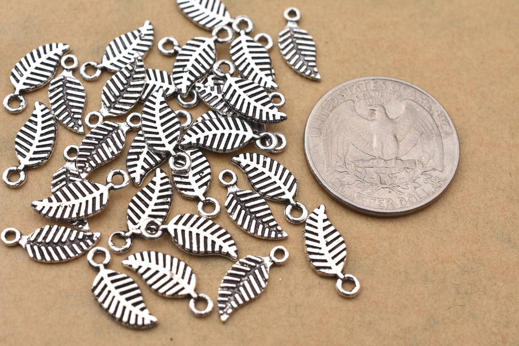 Antique Silver Plated Leaf Charms - 14x6mm
